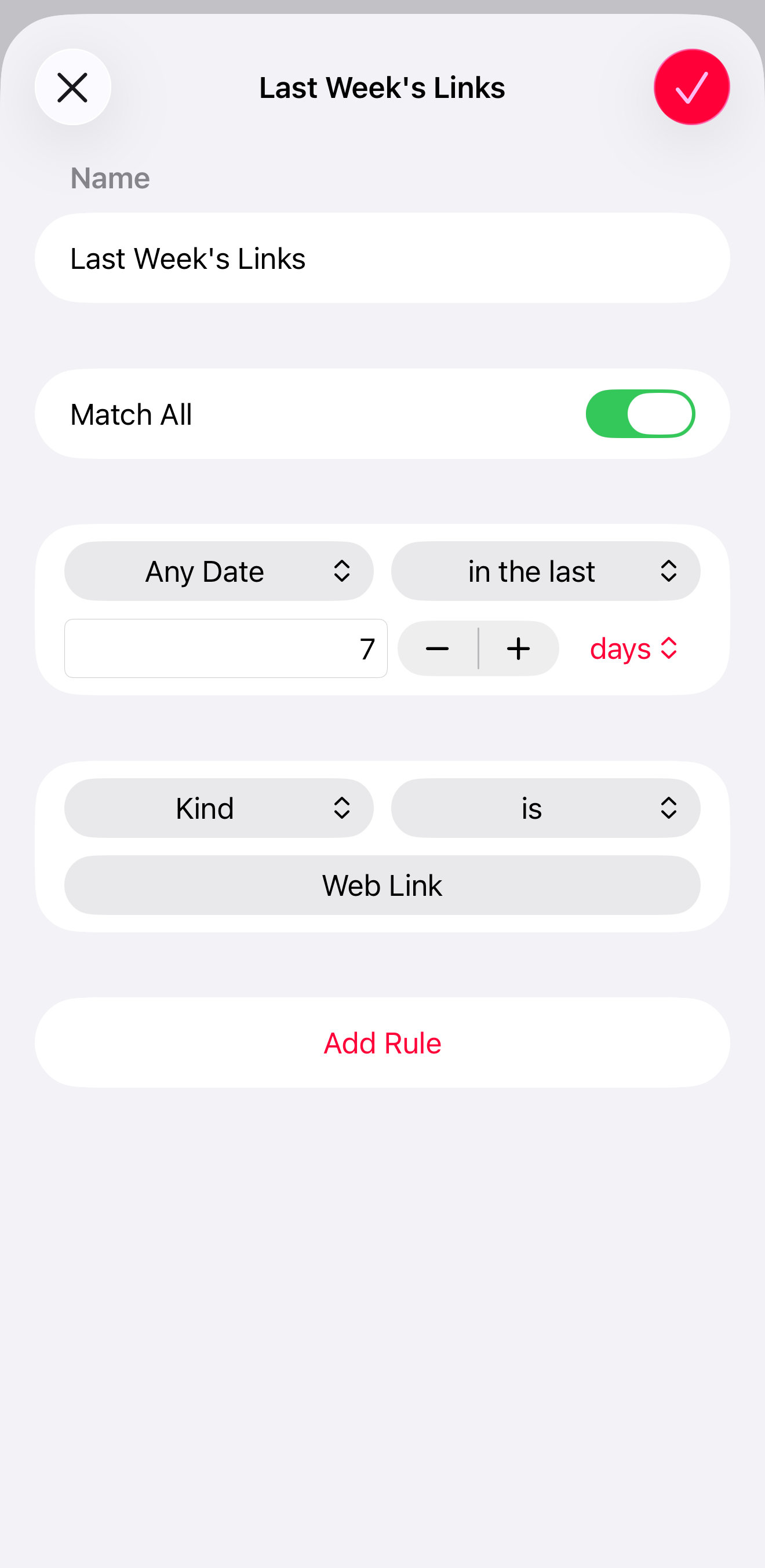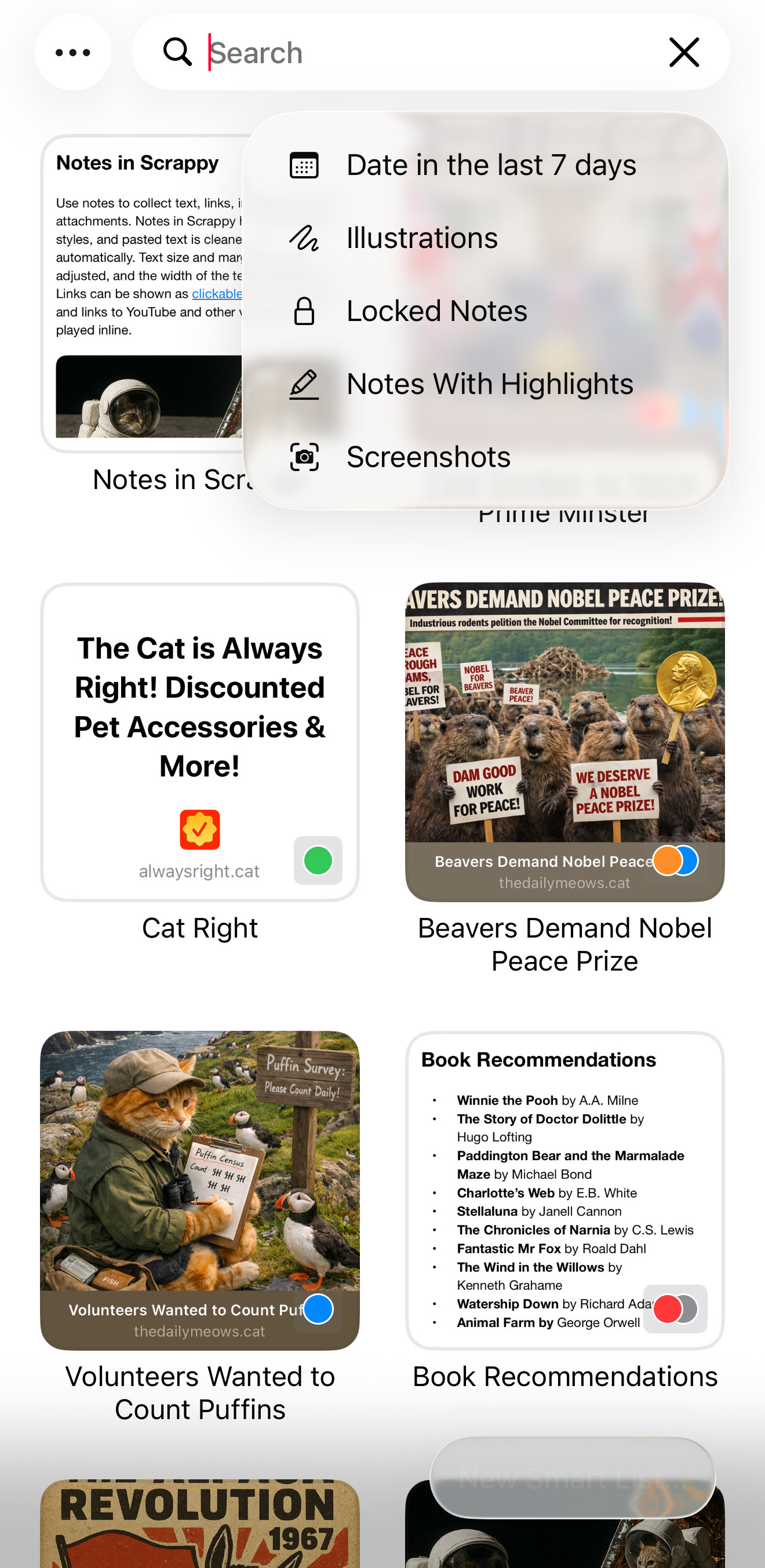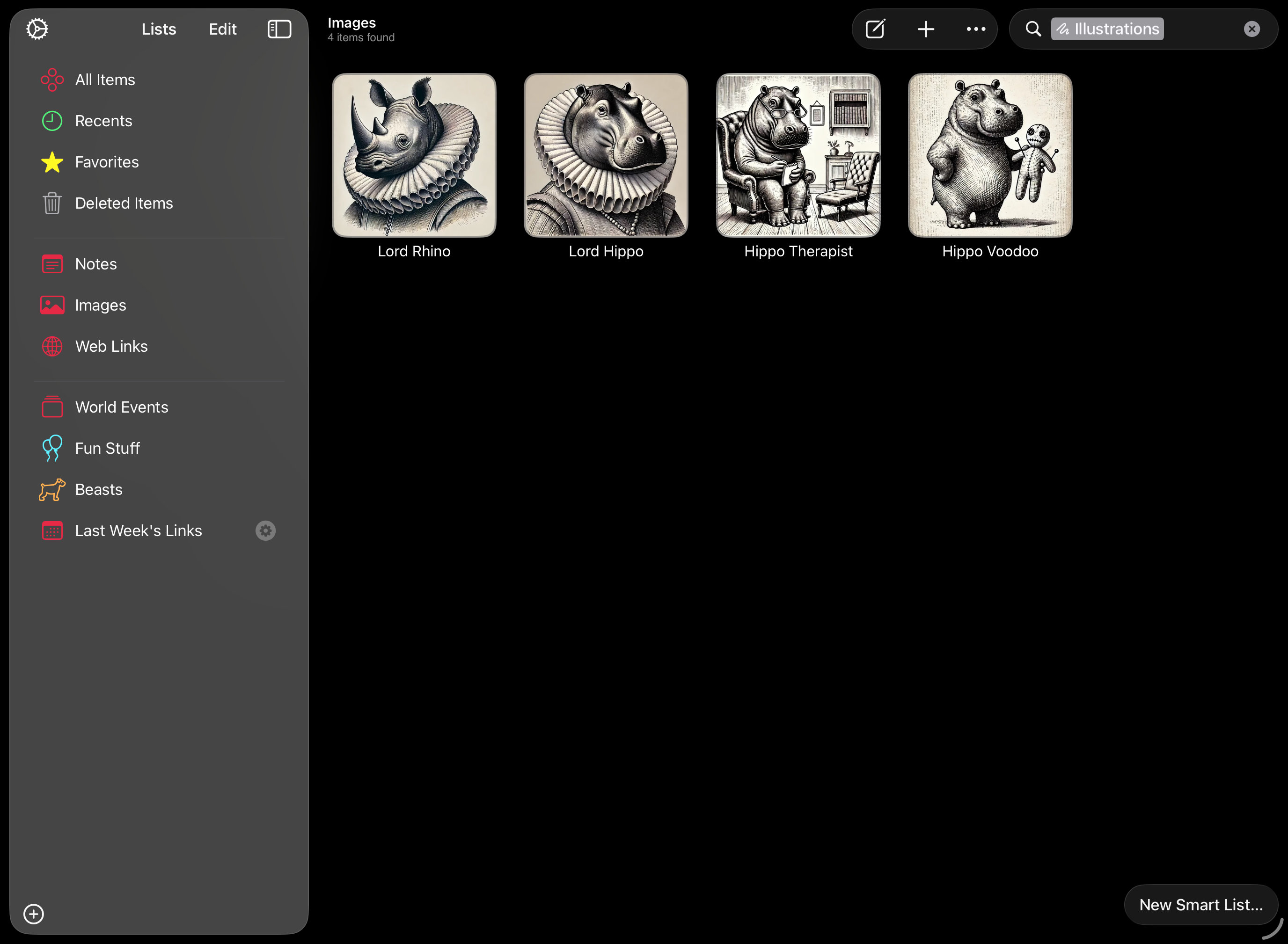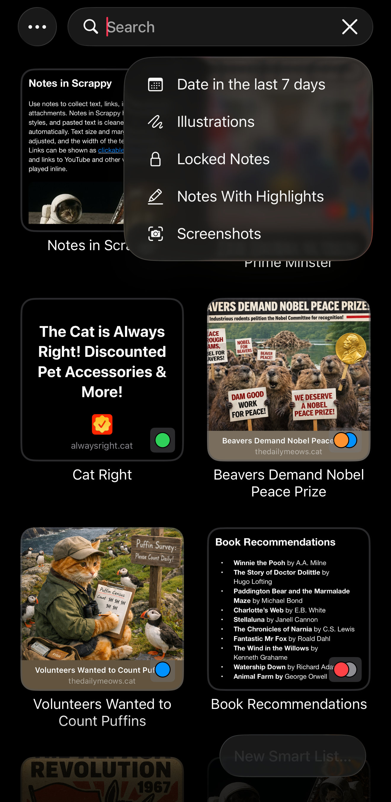 Scrappy also lets you create Smart Lists, either from the current search or from scratch, to match items against a set of rules.